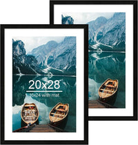 20x28 Picture Frame Set of 2, Rustic Black Wood Style - Display 16x24 Picture with Mat or 20 x 28 Poster without Mat, Wall Mounting Horizontal and Vertical