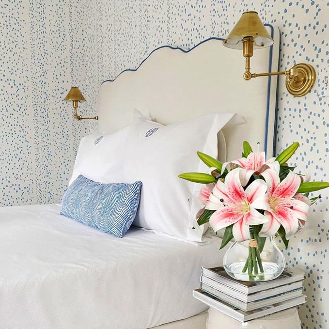 Artificial Flowers Tiger Lily Real Touch with Vase Easter Lily Pink Lilies Silk Faux Flowers Arrangements in Glass Vase with Faux Water Easter Decor Fake Floral Bulk Bouquet for Office Home Decor