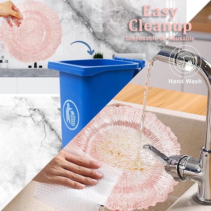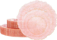 U-QE 60PCS Pink Plates for Party - Pink Plastic Plates Disposable&Reusable - Clear Pink Heavy Duty Plastic Plates for Party Including 30 Plastic Dinner Plates 10" & 30 Plastic Dessert Plates 7"