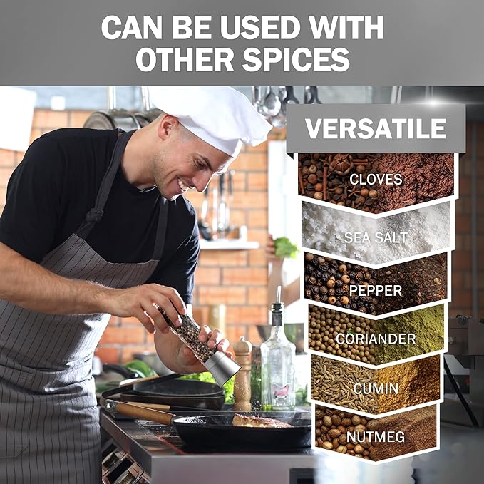 Home EC Original Stainless Steel Sea Salt and Pepper Grinder Set of 2 - Adjustable Ceramic Grinder - Diamond Pattern Glass - Salt and Pepper Shakers - Kitchen Spice Mill - Modern Kitchen Accessories