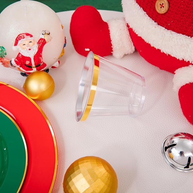SUT 350pcs Green and Red Plastic Plates For 50 Guests, Plates Disposable Heavy Duty, Plastic Plates Disposable, Party Plates And Cups And Napkins Sets, Disposable Plates for Party and Wedding