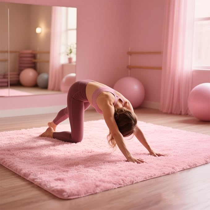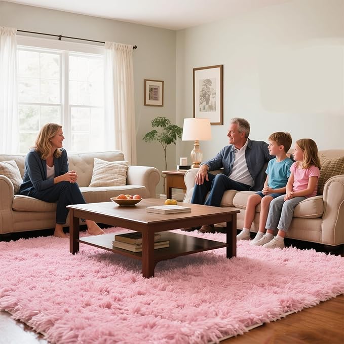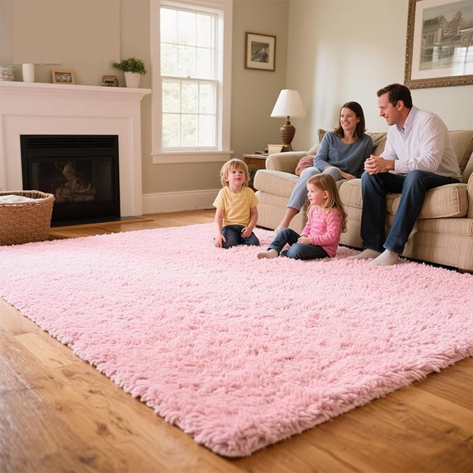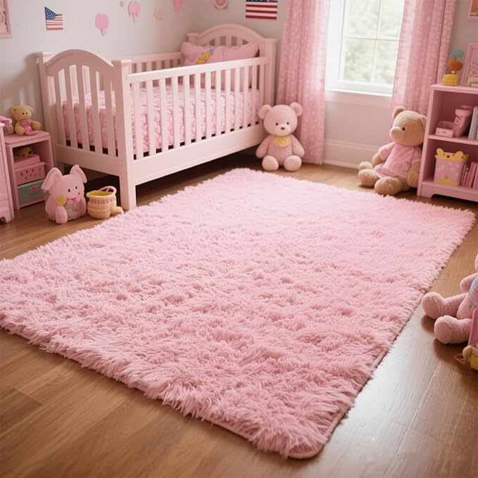 Pink Area Rugs for Girls Bedroom, 6x9 Fluffy Fuzzy Shaggy Carpet for Kids Playroom Nursery Living Room, Thick Soft Plush Mat for Kids Baby Boys Teen Dorm Home Decor Aesthetic