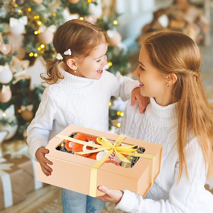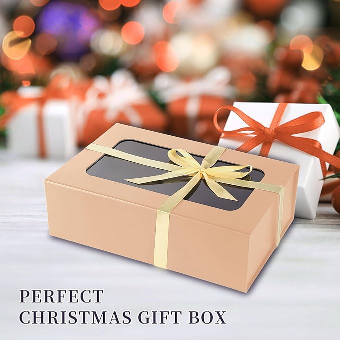 TIACABO Rose Gold Large Gift Box with Window, 13.5"x9"x4.3" Bridesmaid Boxe for Gifts Giving,Birthday Gift Boxes with Magnetic,Closure Lid Gifts Box for Presents,Cute Boxe,Luxury for Gift Packaging