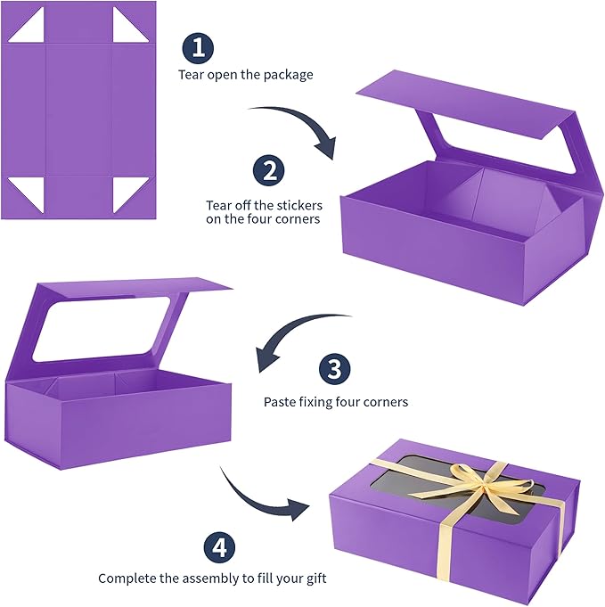 TIACABO Purple Large Gift Box with Window, 13.5"x9"x4.3" Bridesmaid Boxe for Gifts Giving,Birthday Gift Boxes with Magnetic,Closure Lid Gifts Box for Presents,Cute Boxe,Luxury for Gift Packaging