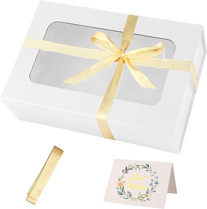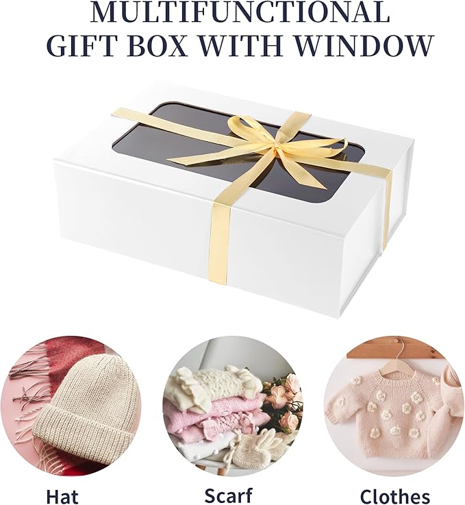 White Large Gift Box with Window, 13.5"x9"x4.3" Bridesmaid Box for Gifts Giving,Birthday Gift Boxe with Magnetic,Closure Lid Gift Boxs for Presents,Cute Box,Luxury for Gift Packaging,Gift Boxes for Wrapping Gifts