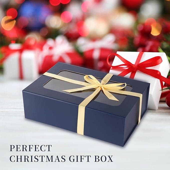 TIACABO Blue Large Gift Box with Window, 13.5"x9"x4.3" Bridesmaid Boxe for Gifts Giving,Birthday Gift Boxes with Magnetic,Closure Lid Gifts Box for Presents,Cute Boxe,Luxury for Gift Packaging