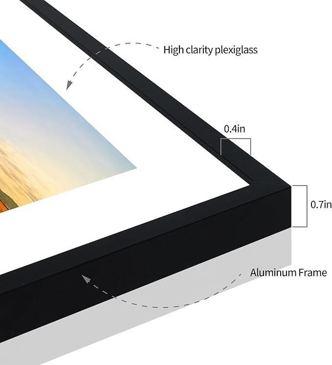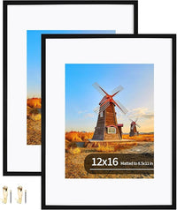 12x16 Metal Picture Frame Set of 2, 12 x 16 Aluminum Photo Frames with 8.5x11 Mat - Sawtooth Hangers, Spring Clips for Wall Mounting Horizontal and Vertical(Black)