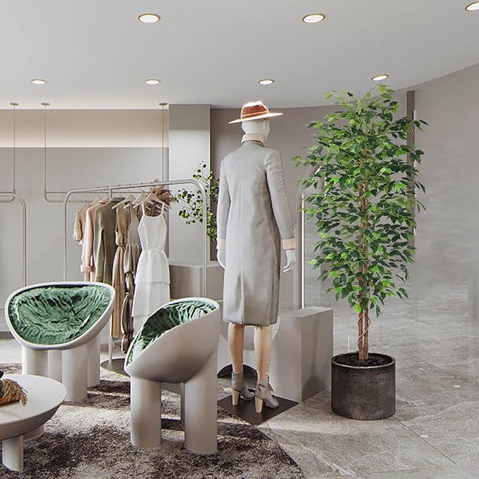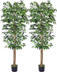 2Packs 6FT Artificial Ficus Tree,Fake Plants with Sturdy Plastic Nursery Pot,Faux Ficus Trees for Home Office Living Room Farmhouse Indoor Outdoor Decor Perfect Housewarming Gift (6FT-2Packs)