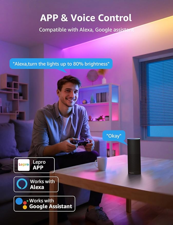 Lepro S1 AI LED Strip Lights for Bedroom - 100ft(2 Rolls of 50ft) Smart RGB Light Strips with IC and Rainbow Chasing Effects, AI Generated Lighting, No Remote, 2.4G Wi-Fi & Bluetooth