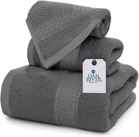 DAN RIVER 100% Ring Spun Cotton 3-Piece Towel Set, Grey, Bath Towel, Hand Towel and Washcloths, 550 GSM - Soft, Absorbent Quick Dry Cotton Towels for Bathroom, Spa, and Gym Sale