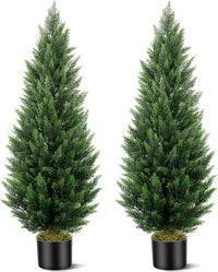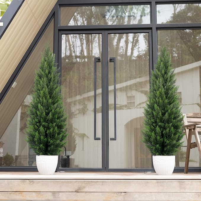 Artificial Topiary Cedar Trees 5FT Tall 2 Set, Outdoor Indoor Faux Pine Shrubs Plants, Realistic Fake Plants Front Porch Decor, Artificial Bushes Cypress for Home Front Door Offices