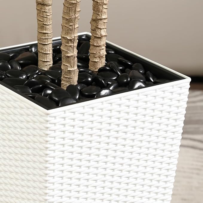 Artificial Dracaena Tree, 6FT UV Resistant Fake Plants with White Taper Planter, Lifelike Tall Artificial Floor Plants for Indoor & Outdoor, Faux Tree for Home Courtyard Decor