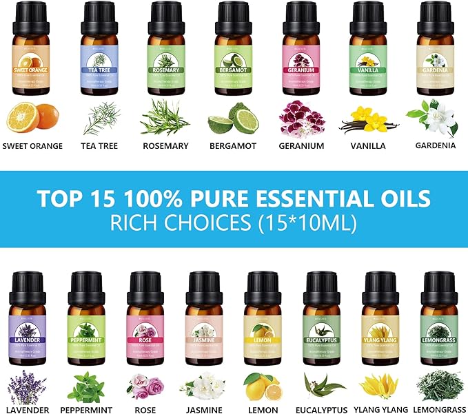 SACATR 550ml Aromatherapy Diffuser with 15x10mL Essential Oils, Ultrasonic Technology, Remote Control for Home Office