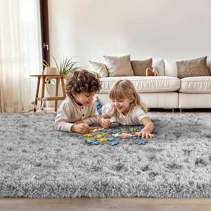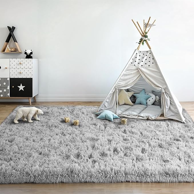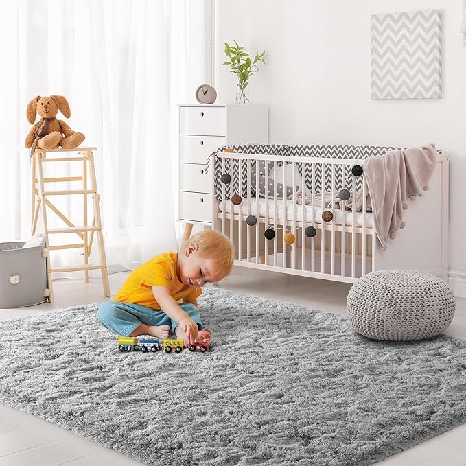 3x5 Light Grey Small Throw Rug for Entryway Non Slip, Mini Fluffy Grey Rugs for Bedroom, Plush Furry Cozy Front Entrance Indoor Floor Carpet Home Decor Aesthetic Nursery