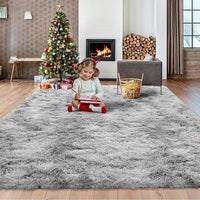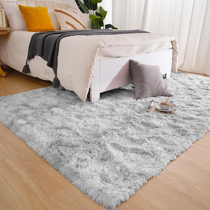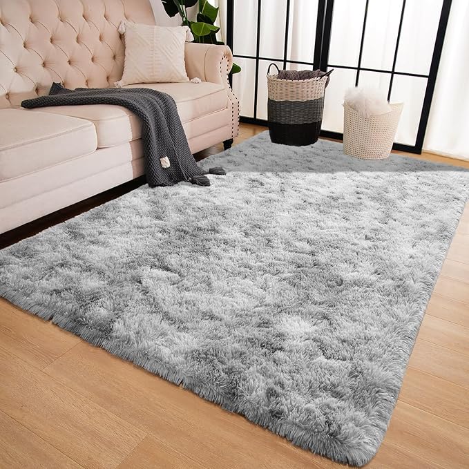 Tie Dyed Grey Fluffy 8x10 Area Rug for Living Room, Plush Shag Rugs for Bedroom, Large Soft Furry Carpets for Kids Room, Modern Indoor Nursery Carpet for Classroom Dorm Cozy Comfy Home Decor