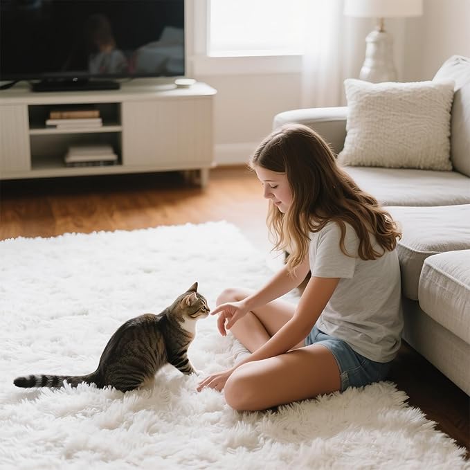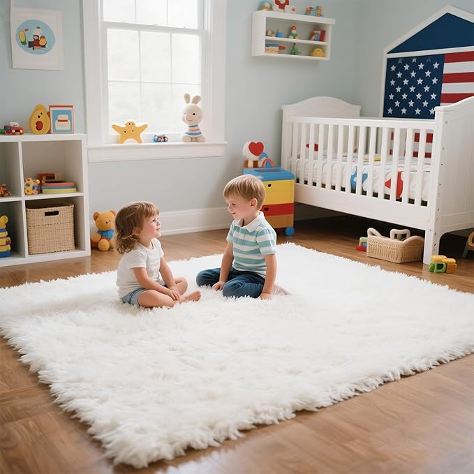 Small Bedside Rug, 3x5 Non Slip Fluffy Shaggy Entryway Throw Rugs for Bedroom Living Room, Indoor Floor Carpet for Kids Girls and Boys, Nursery Rooms Mat, Home Decor Aesthetic, White