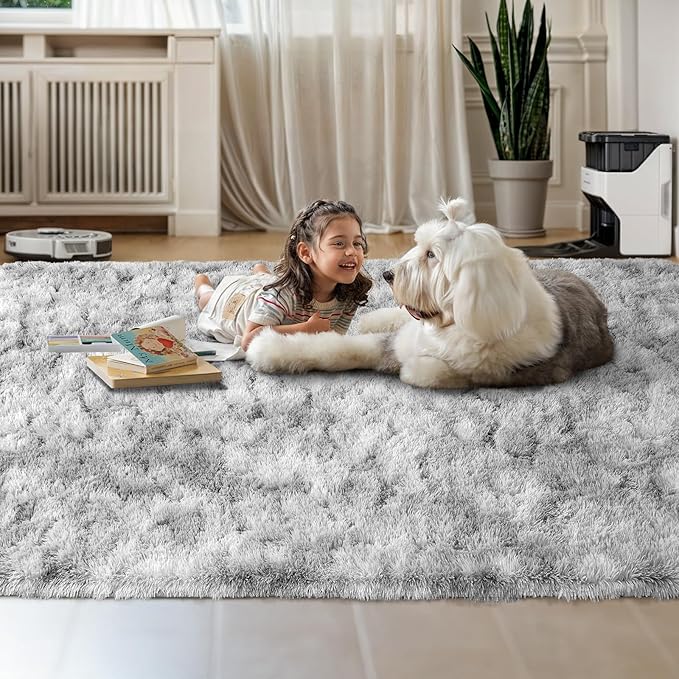 6x9 Large Plush Area Rugs for Living Room, Shag Fuzzy Rug for Bedroom, Ultra Soft Fluffy Furry Carpets for Kids Room, Indoor Carpet Nursery Rugs for Kids Room Home Decor, Tie Dyed Grey