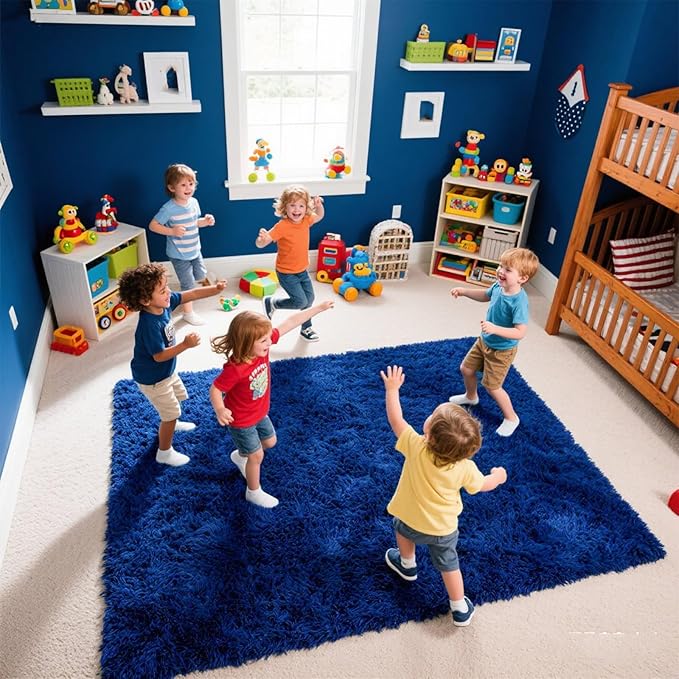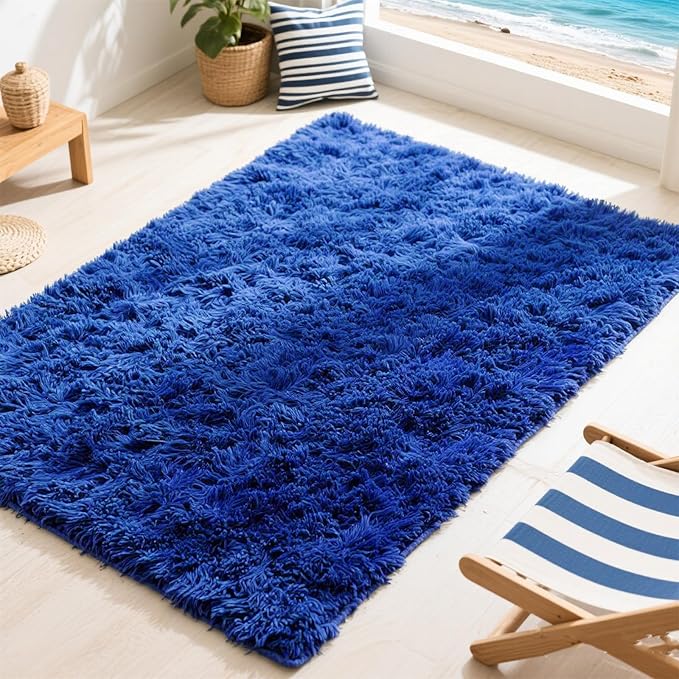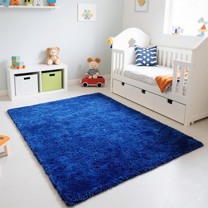 Small Bedside Rug, 3x5 Non Slip Fluffy Shaggy Entryway Throw Rugs for Bedroom Living Room, Indoor Floor Carpet for Kids Girls and Boys, Nursery Rooms Mat, Home Decor Aesthetic, Blue