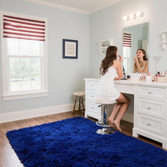 Area Rugs for Bedroom Living Room, 8x10 Soft Large Fluffy Fuzzy Shag Plush Furry Carpet, Soft Indoor Floor Mat for Kids Nursery Home Dorm Office Decor Aesthetic, Blue