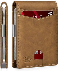 Zitahli Slim Wallet for Men Gifts 12 Card Slots ID Window With Money Clip Minimalist RFID Front Pocket Bifold Leather Small Thin Gift Box Dad Birthday Christmas Regalos Hombres Sale