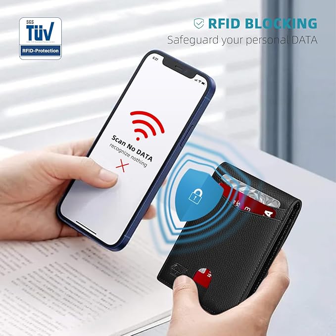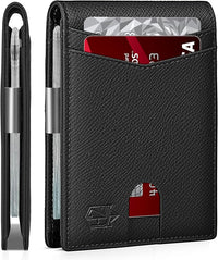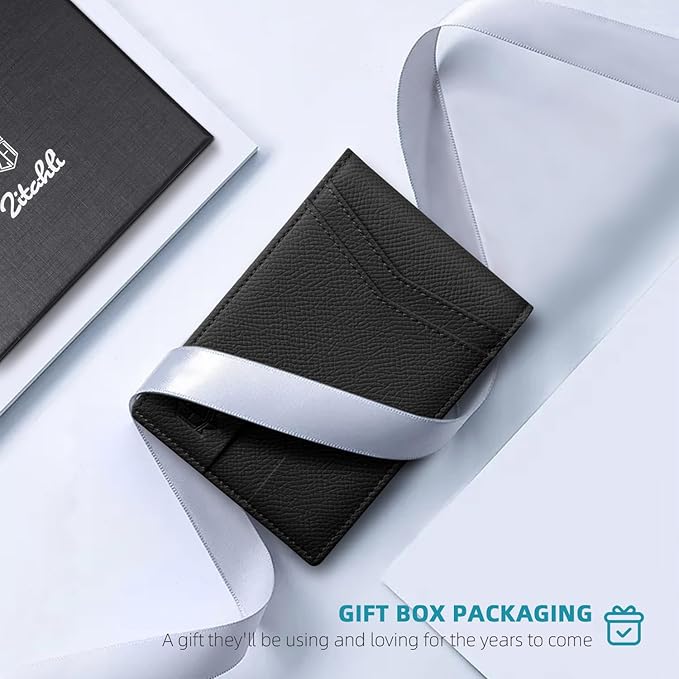 Zitahli Slim Wallet for Men Gifts 12 Card Slots ID Window With Money Clip Minimalist RFID Front Pocket Bifold Leather Small Thin Gift Box Dad Birthday Christmas Regalos Hombres