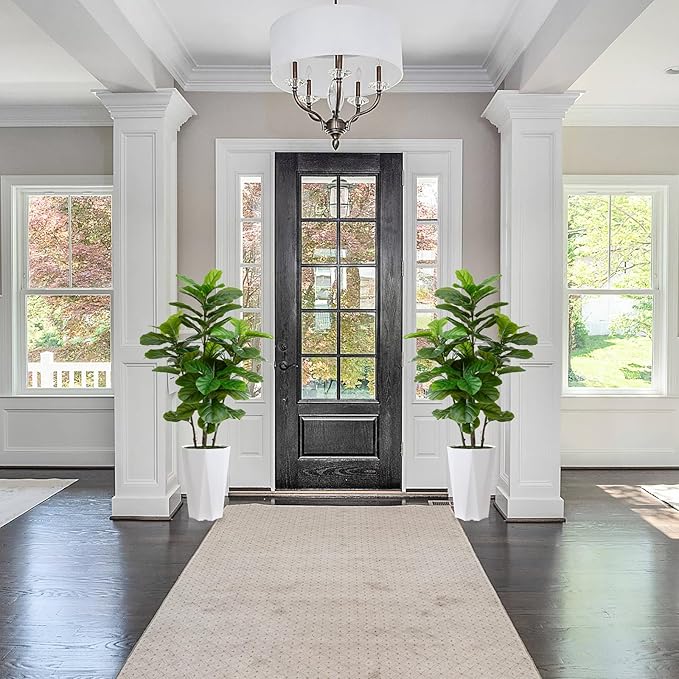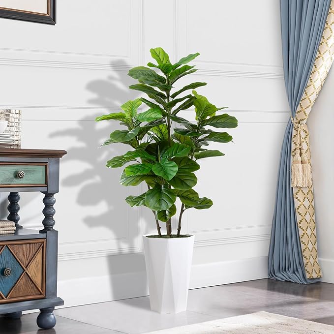 Artificial Fiddle Leaf Fig Plant Indoor 5FT Faux Fig Tree with White Diamond Planter Tall Fake Floor Plant in Pot Artificial Trees for Home Office Living Room Decor Indoor