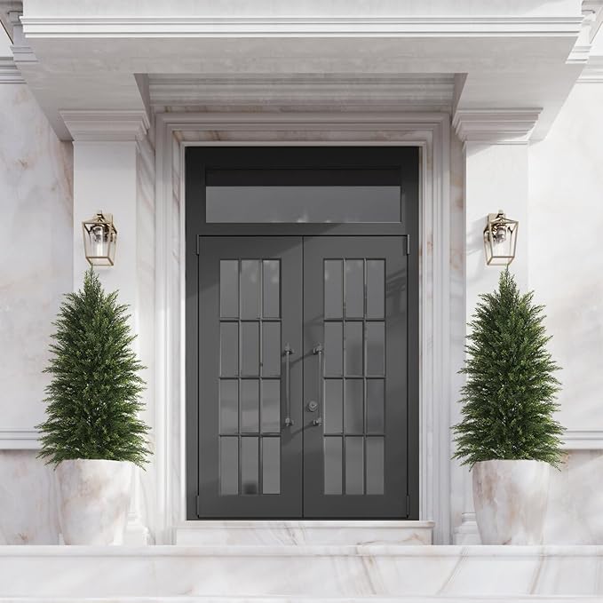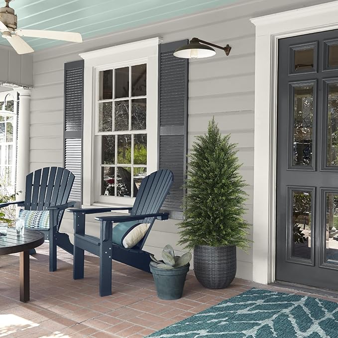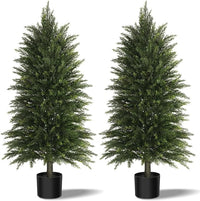 4FT Artificial Cedar Trees Set of 2, Realistic Faux Evergreen Topiary Bushes Plants, Outdoor Potted Fake Cypress Shrubs for Front Porch Garden Home Living Room Decor