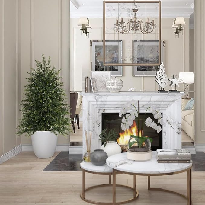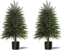 3FT Artificial Cedar Trees Set of 2, Realistic Faux Evergreen Topiary Bushes Plants, Outdoor Potted Fake Cypress Shrubs for Front Porch Garden Home Living Room Decor
