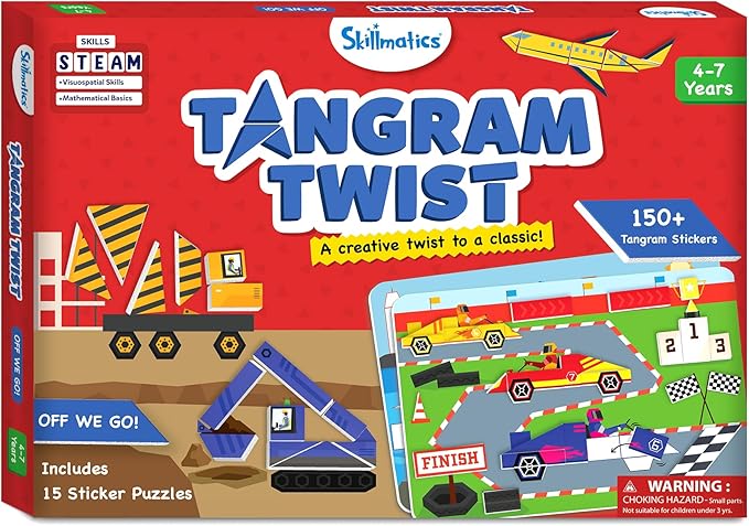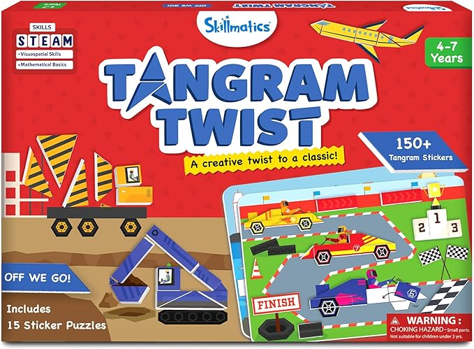Skillmatics Tangram Sticker Puzzles - Educational Art & Craft Activity with 150+ Foam Tangram Stickers, Creative Toys & Games for Boys & Girls Ages 4, 5, 6, 7
