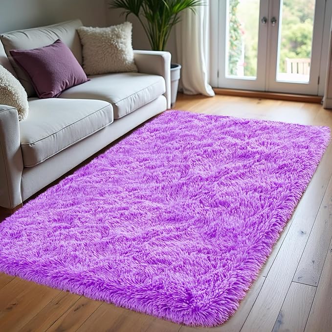 Purple Area Rugs for Bedroom Living Room, 3x5 Soft Fluffy Fuzzy Shag Plush Furry Carpet, Large Indoor Floor Mat for Kids Nursery Home Dorm Office Decor Aesthetic