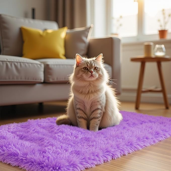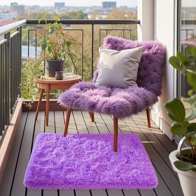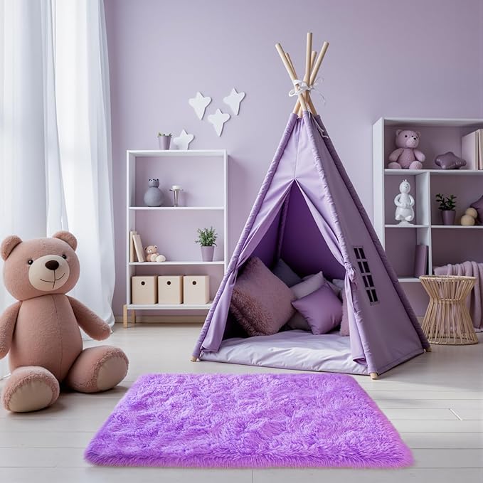 Purple Area Rugs for Bedroom Living Room, 2x3 Soft Fluffy Fuzzy Shag Plush Furry Carpet, Large Indoor Floor Mat for Kids Nursery Home Dorm Office Decor Aesthetic