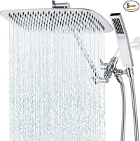 G-Promise All Metal 14 Inch Dual Square Shower Head with Handheld Spray Combo, Rain Shower Head, Adjustable Extension Arm, 3-Way Diverter, 71 Inch Extra Long Hose - A Bathroom Upgrade (Chrome)