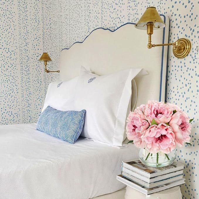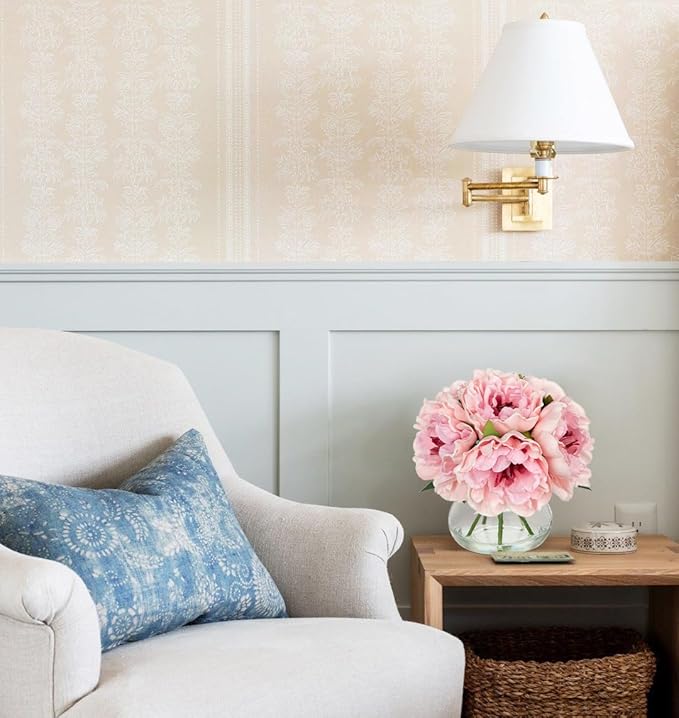 Hollyone Light Pink Peonies Artificial Flowers with Vase Faux Flowers Peony Fake Flowers Silk Flower Arrangements in Glass Vase with Faux Water for Bathroom Table Centerpiece Shelf Home Decor