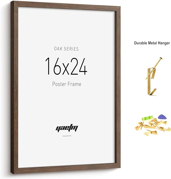 Yaetm Minimalist 16x24 Frame - Brown Walnut, Solid Wood 16x24 Poster Frame for Picture & Art Print, Lightweight, Horizontal and Vertical Wall Hanging for Photo Gallery (Single, Walnut)