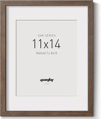 Yaetm 11x14 Picture Frame with Mat for 8x10 - Brown Walnut, Rustic Solid Wood Photo Frame 11 x 14 with Tempered Glass for Art Print & Picture, Horizontal and Vertical Wall Mount (Single, Walnut)