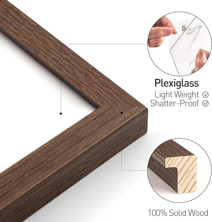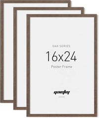 Yaetm Minimalist 16x24 Frame - Brown Walnut, Solid Wood 16x24 Poster Frame for Picture & Art Print, Lightweight, Horizontal and Vertical Wall Hanging for Photo Gallery (3 Pack, Walnut)