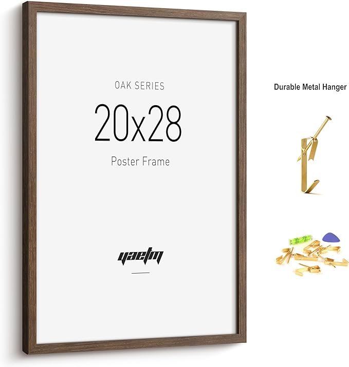 Yaetm 20x28 Picture Frame - Brown Walnut, Solid Wood 20x28 Poster Frame for Picture & Art Print, Lightweight, Horizontal and Vertical Wall Hanging for Photo Gallery (3 Pack, Walnut)
