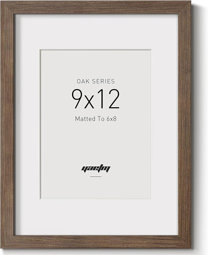 Yaetm 9x12 Picture Frame with Mat for 6x8 - Brown Walnut, Rustic Solid Wood Photo Frame 9 x 12 with Tempered Glass for Art Print & Picture, Horizontal and Vertical Wall Mount (Single, Walnut)
