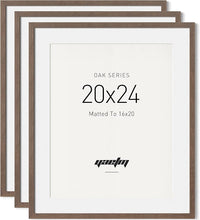 Yaetm 20x24 Picture Frame Matted to 16x20 - Brown Walnut, Solid Wood 20 x 24 Frame for Poster & Art Print, Lightweight, Horizontal and Vertical Wall Hanging for Photo Gallery (3 Pack, Walnut)