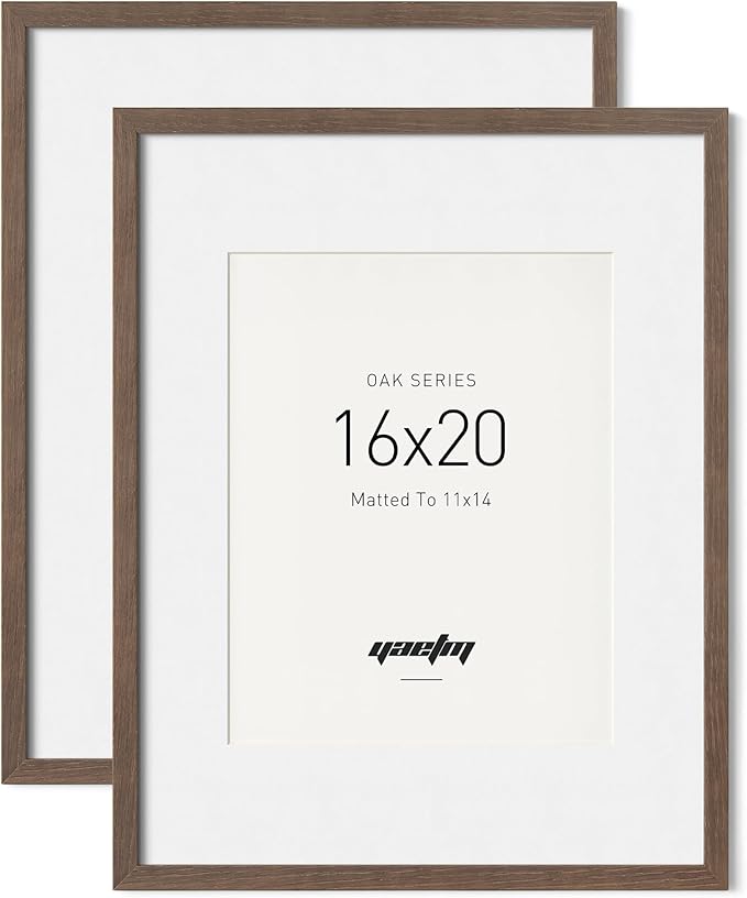 Yaetm 16x20 Picture Frame with Mat for 11x14 - Solid Walnut Wood 16 x 20 Frame for Poster & Art Print, Lightweight, Horizontal and Vertical Wall Hanging for Photo Gallery (2 Pack, Walnut)