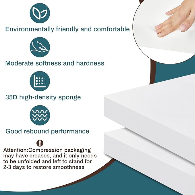 Frienda 2 Pack 3" x 24" x 24" Upholstery High Density Foam Cushion Replacement Square Cut to Size Foam Couch for Chair Couches Padding Shipping Packing DIY Cosplay Projects