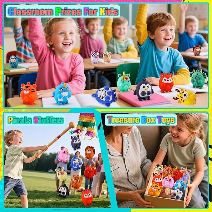 24 PCS Party Favors for Kids, Silicone Animal Pop Fidget Toys with Suction, Birthday Gifts for Boy Girls, Treasure Box Toys, Goodie Bag Stuffers, Prizes for Kids, Pinata Stuffers