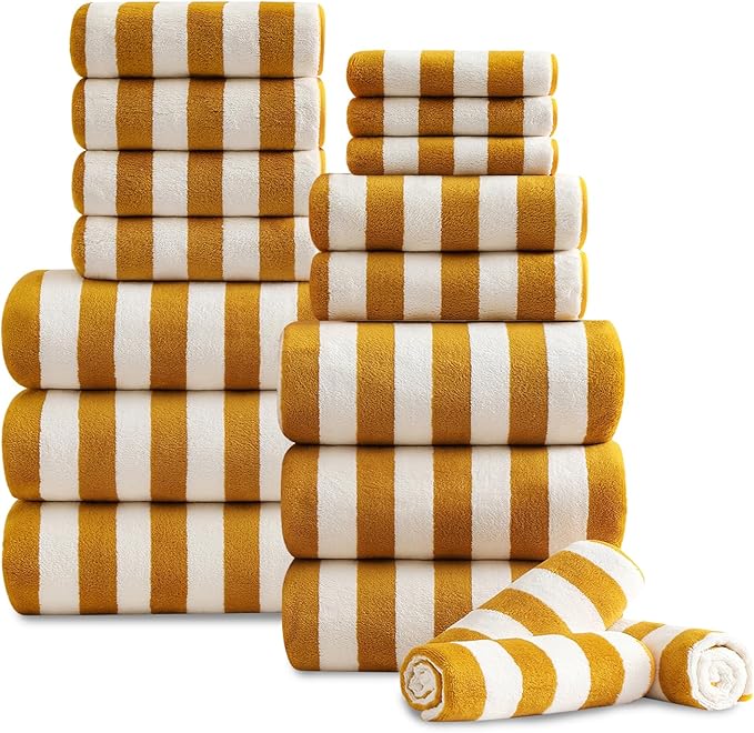 Oliven 18 Pcs Yellow Cabana Stripe Family Towels Set-6 Bath Sheets,6 Hand Towels,6 Washcloths Soft Jumbo Bathroom Towels Absorbent Shower Towel Quick Dry Beach Chair Towel Spa Gym Hotel Towel Set
