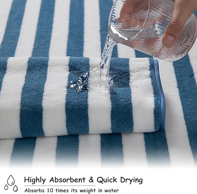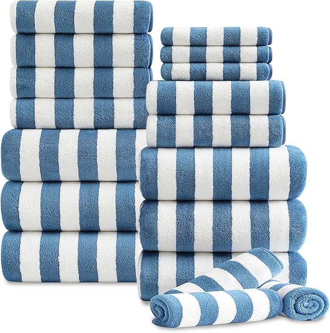 18 Pcs Navy Cabana Stripe Family Towels Set with Hanging Loop-6 Bath Sheets,6 Hand Towels,6 Washcloths Ultra Soft Bathroom Towel Highly Absorbent Quick Dry Shower Towel for Beach Chair,Spa,Gym,Hotel