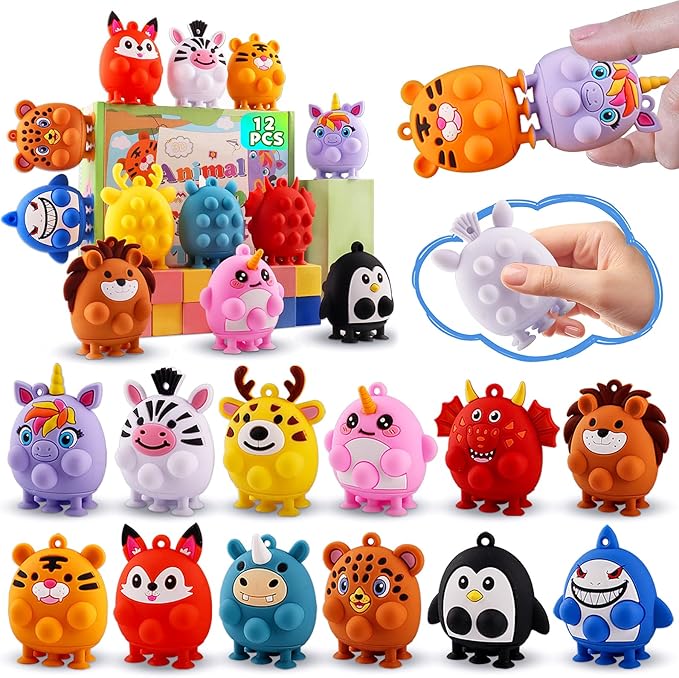 12 PCS Party Favors for Kids, Silicone Animal Pop Fidget Toys with Suction, Birthday Gifts for Boy Girls, Treasure Box Toys, Goodie Bag Stuffers, Prizes for Kids, Pinata Stuffers