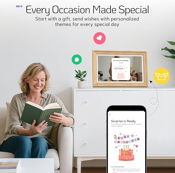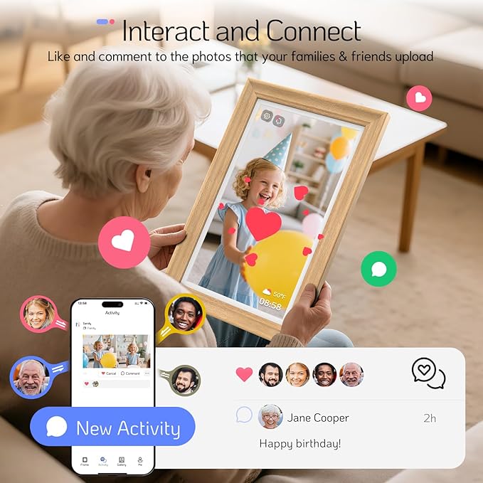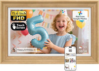 NexFoto Touchscreen Digital Picture Frame 15.6'', FHD WiFi Digital Photo Frame, 64GB Wood Electronic Picture Frame, Add Photos from Google Photos, Share Videos, for Mom, Birthday, Wood