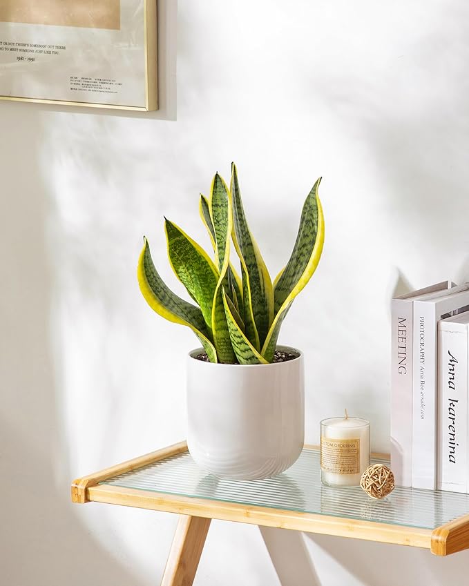 vancasso 6 Inch Ceramic Plant Pots, Planters with Drainage Hole, Flower Pots Planters Pots for Indoor Plants, Modern Indoor Decorative Garden Pot, Home Decor, White