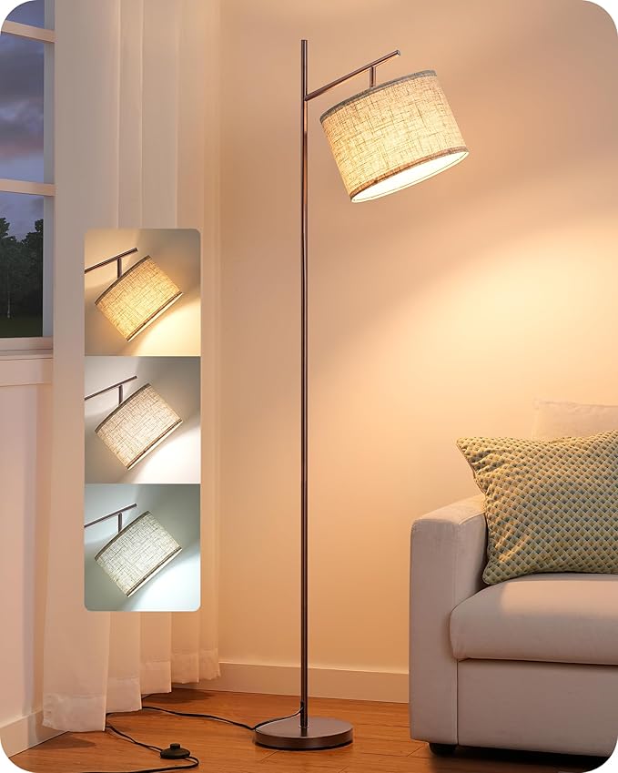 EDISHINE 64.7" Modern Minimalist Floor Lamps for Living Room with 3 Color Temperatures Bulb & Adjustable Linen Shade, Foot Pedal Switch, Tall Standing Lamp for Bedroom Office, Brown