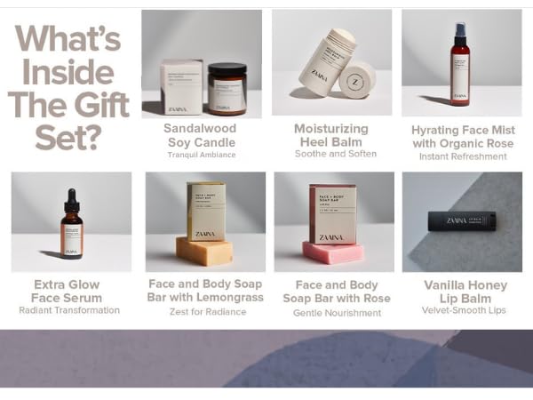 ZAAINA Spa Gift Basket for Women – Luxury Self Care Kit with Face Mist, Glow Serum, Soaps, Lip Balm & Candle – Natural Pampering Care Package for Women – Birthday & Relaxation Spa Basket (Premium Set)