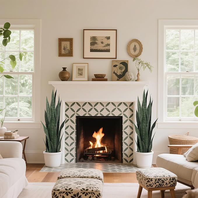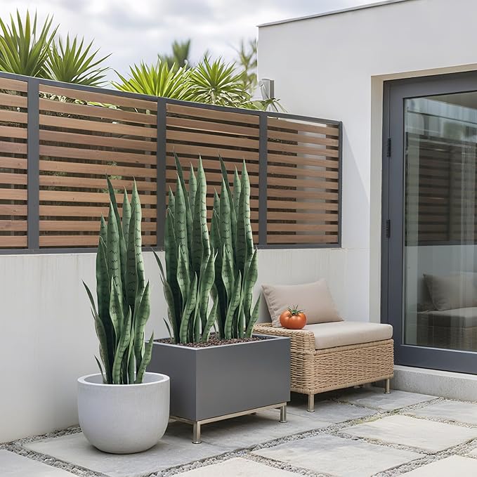 Fake Snake Plant 3ft Tall Faux Sansevieria with 24 Realistic Leaves UV Resistant Potted 2 Pack Fake Mother in Law's Tongue Plants for Indoor Outdoor Home Office Bedroom or Patio Decoration